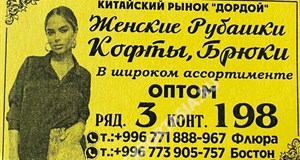 Поставщики района Дордой Дордой (китайский рынок) 3-4 ряд