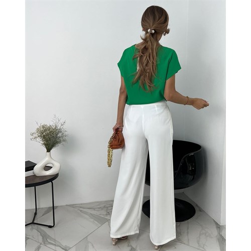 Обратите внимание белые брюки идеально сочетаются с топами любого цвета