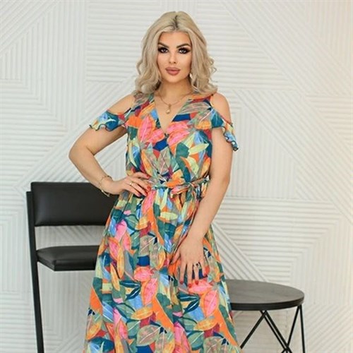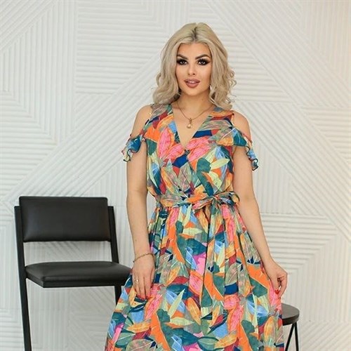 Длинный сарафан Валерия из штапеля с ярким принтом
