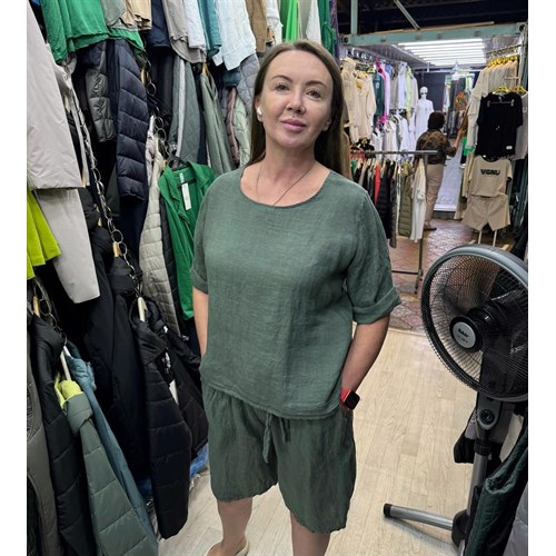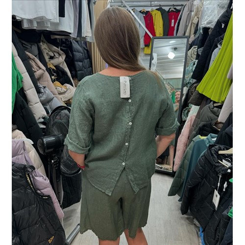 Льняная двойка с красивой спиной на пуговицах