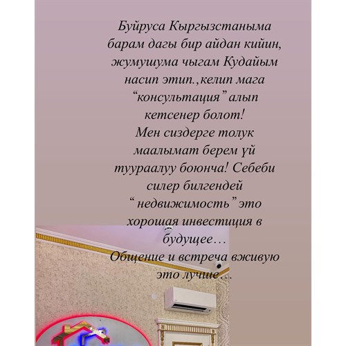 Маалымат алам десеер, менин байланыш номериме жазыыздар +<телефон скрыт>, мен сууролоруарга жооп берем.