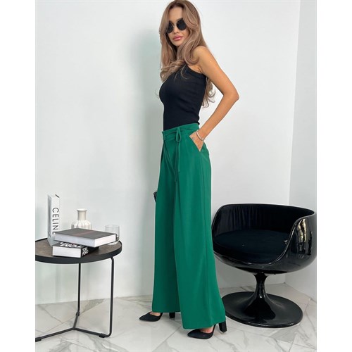 Мега стильные брюки палаццо в зеленом модном цвете