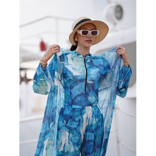 • Компоненты набора: боди на удобной молнии, брюки клёш, накидка с разрезом и регулируемой кулиской-завязкой.