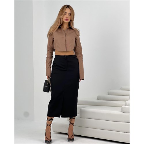 Собрали еще один крутой образ уже с юбкой миди прямого кроя