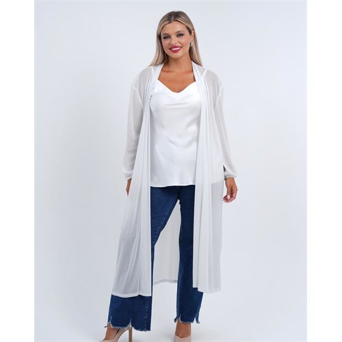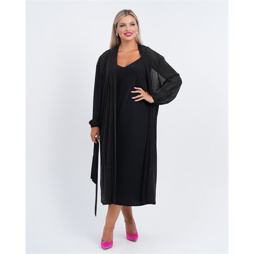Удлиненная накидка создана для завершения ежедневных луков и для особых случаев. Модель выполнена из мягкого трикотажа-люрекс, со спущенными рукавами.