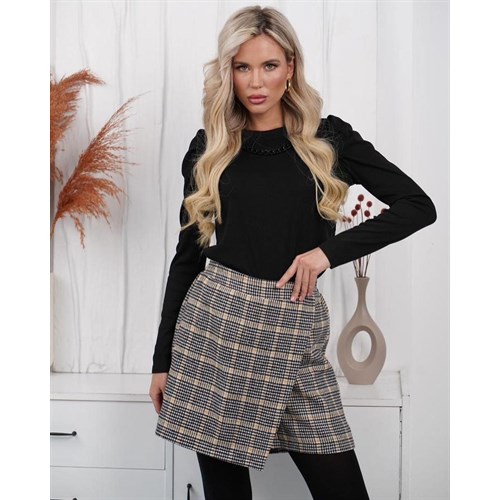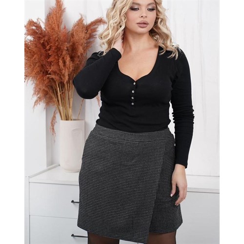 Высокая посадка, резинка по спинке изделия делают юбку-шорты невероятно удобной.
