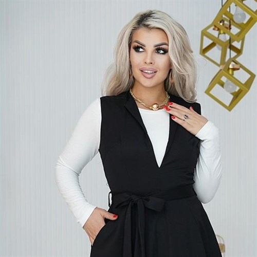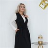 Этот стильный и комфортный сарафан идеально подходит для дня в офисе или деловых встреч. Его расклешенный силуэт придает женственную форму, а вырез с отложным лацканом добавляет изысканности и элегантности вашему образу. Съемный ремень подчеркивает талию и добавляет акцент к образу. Практичные накладные карманы придают сарафану функциональность, позволяя хранить мелочи и необходимые предметы всегда под рукой.