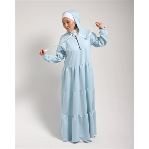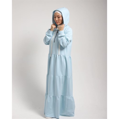 Ярусные платья с капюшоном, на груди рабочий замок.